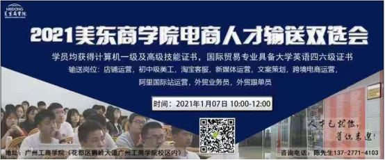 2021年1月7日,beat365在线体育官网登录入口联合美东电商学院在学校实验楼共同举办“外贸电商校园专场双选会”。13家企业提供了98个电商运营、跨境电商运营、美工、客服、外贸业务员、外贸跟单员、新媒体运营等专业对口岗位,商学院2021届电子商务、国际经贸与贸易专业100多名毕业班同学参与此次双选会。