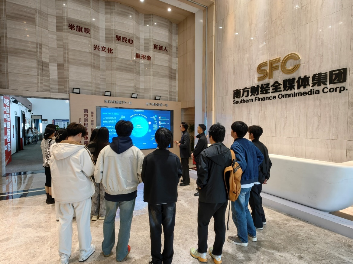 2025年4月2日,我院投资学专业私募基金班开展了一次别开生面的实践研学活动。在投资学专业校企合作负责人刘登权老师,以及王一琳、何楚倩、邓思敏老师的带领下,24级投资学专业私募基金人才实验班学生一行走进了国内领先的财经媒体智库——南方财经全媒体集团,进行了一次深入的学习和交流,近距离感受财经媒体的数字化转型浪潮,探寻其运营背后的奥秘。