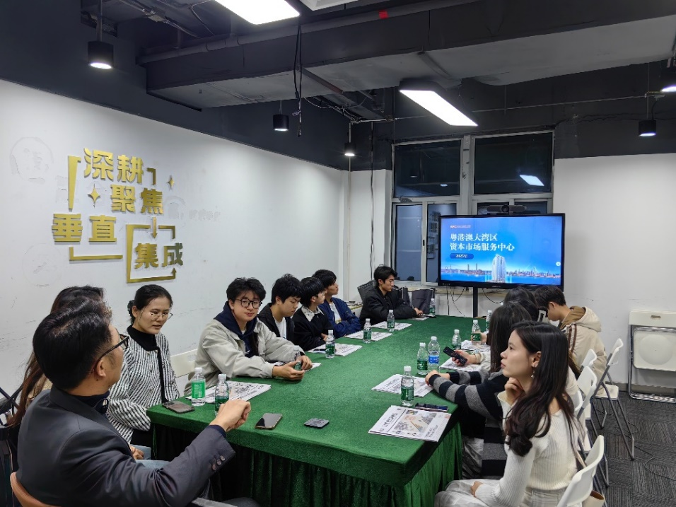 在南方财经总部大楼的展示中心,学生们受到南方财经大湾区资本市场服务中心执行总经理丁栩先生及运营经理郑何平的热情接待。展示中心内,一幅幅生动的画面和详实的数据深深吸引了学生们的目光。这里全面而系统地展示了南方财经全媒体集团的主要业务板块,涵盖了媒体业务、智库服务、数据业务以及交易业务等多个领域。南方财经集团以21世纪经济报道、21财经APP、经视频道、股市广播为核心,构建了一个涵盖多种介质的全媒体矩阵,并通过创新的“中央厨房”平台,实现了优质内容和传播渠道的深度融合,成功打造出具有强大市场竞争力的财经全媒体集群。