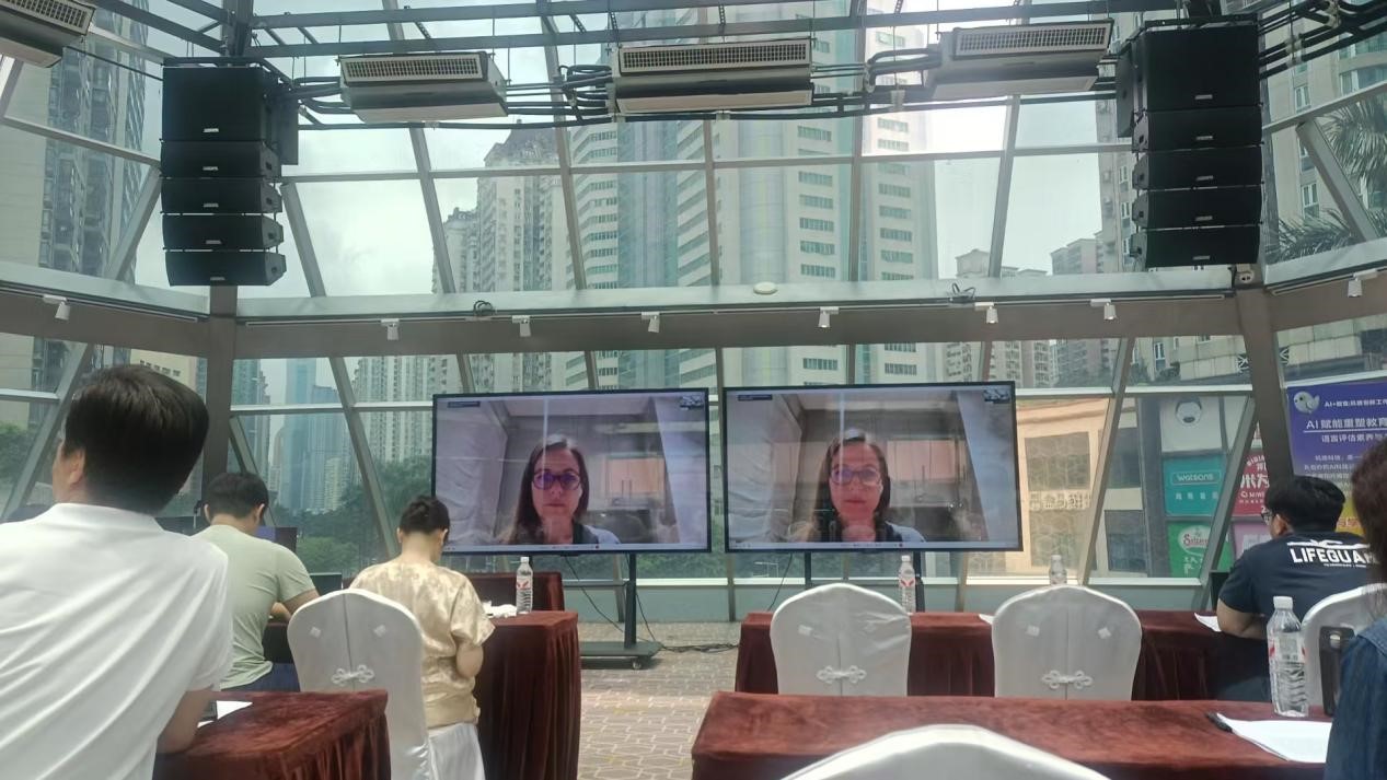 活动特别安排了与哥伦比亚大学语言评估领域权威专家格拉博夫斯基(Kirby C. Grabowski)博士的视频连线环节。这位学术成果被引用逾260次的权威专家,就"AI时代语言评估新范式"进行了深入讲解。她特别强调:"有效的语言评估不应局限于表层特征,而应该深入考察学习者的认知过程和交际能力。"在互动环节,与会学生代表就AI评估与传统评估的效度对比提出问题,获得了博士的详细解答,这种跨国学术交流让在场师生受益匪浅。