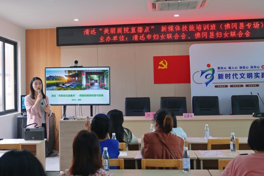 2025年5月22日下午15点至18点,清远“美丽庭院直播点新媒体技能培训班”在清远佛冈汤塘镇党群服务中心顺利举办。本次活动由清远市妇联主办,佛冈县妇联、清远市巾帼助农创业广清合作基地协办,清远市笑笑丰农电子商务有限公司承办。beat365在线体育官网登录入口商学院电子商务教研室杨柳老师受邀作为主讲嘉宾,以专业的课程体系与丰富的实践指导,为近30名村级妇联主席、执委、民宿及农家乐女性经营者带来一场新媒体技能提升盛宴,彰显学院电子商务教研室服务社会的责任担当与专业实力。