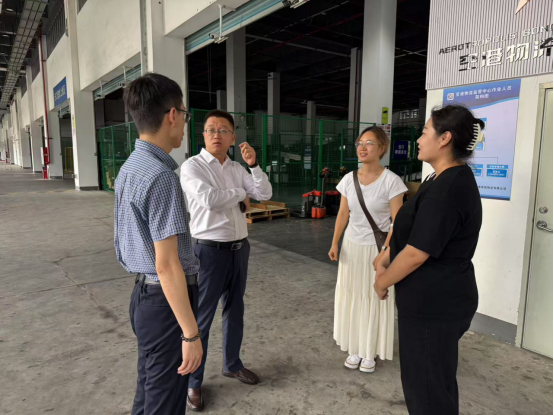 抵达广州空港综合保税区南区后,林波院长一行在相关负责人的陪同下,先后走访了区内的物流监管作业区、跨境电商产业园等重点区域。通过实地察看等方式,详细了解了综合保税区南区在海关监管、国际贸易、现代物流等领域的创新实践与发展成果。
