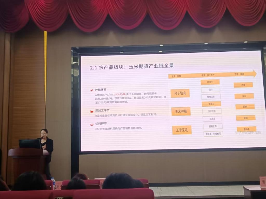 紧接着,陈梦慧总监为同学们带来了题为《期货基础知识入门》的专题讲解。作为现代金融市场体系的重要组成部分,期货对于投资学专业学生而言是必须掌握的核心内容。她从期货的起源与概念入手,循序渐进地阐述了期货市场的功能、运作机制、主要交易品种以及基本的交易规则。她通过贴近市场的实例,化抽象为具体,生动解释了套期保值、价格发现等期货核心功能,并对期货与现货的区别与联系进行了清晰梳理。陈总监的讲解条理清晰、内容充实,为初涉期货领域的同学们构建了一个系统而全面的知识框架,激发了大家深入探索这一充满魅力领域的浓厚兴趣。