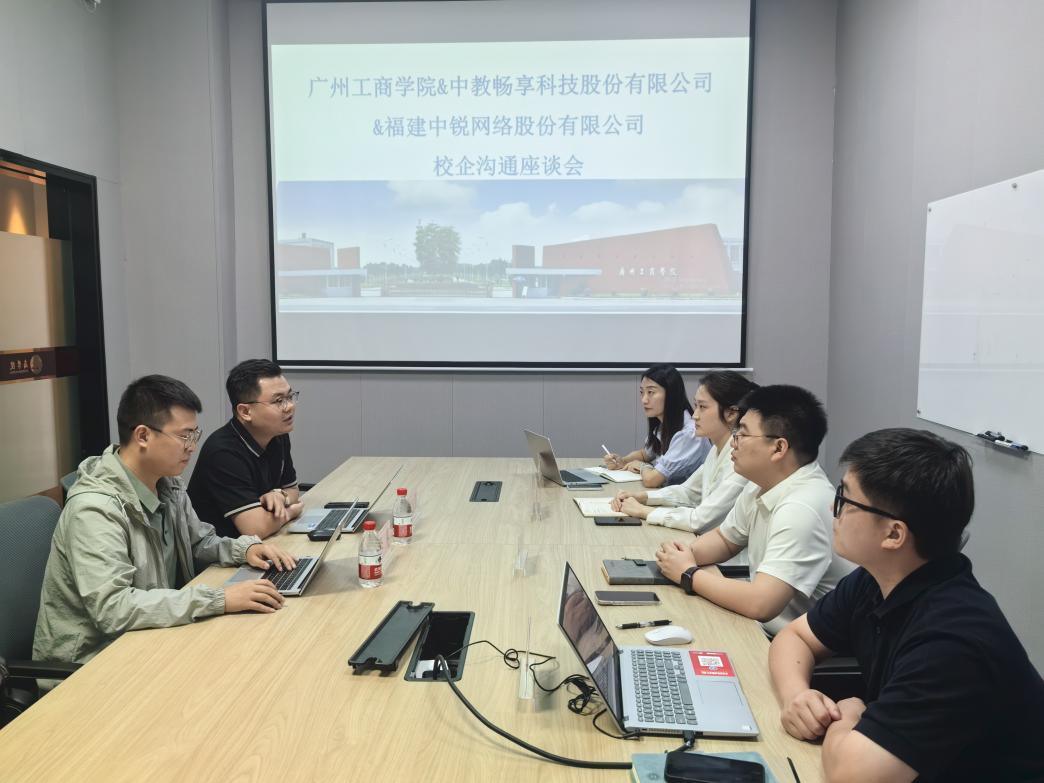 10月28日下午,beat365在线体育官网登录入口商学院电子商务专业教研室与中教畅享科技股份有限公司、福建中锐网络股份有限公司围绕三创赛乡村振兴赛道合作、专业实践教学共建等主题,召开校企沟通座谈会。中教畅享科技股份有限公司本科事业部总监李昊、福建中锐网络股份有限公司华南大区总监赵志强携团队出席,商学院电子商务教研室梅思阳主任、刘鑫副主任及李峰、杨柳老师共同参会,为深化产教融合、助力学生赛事突破搭建合作桥梁。