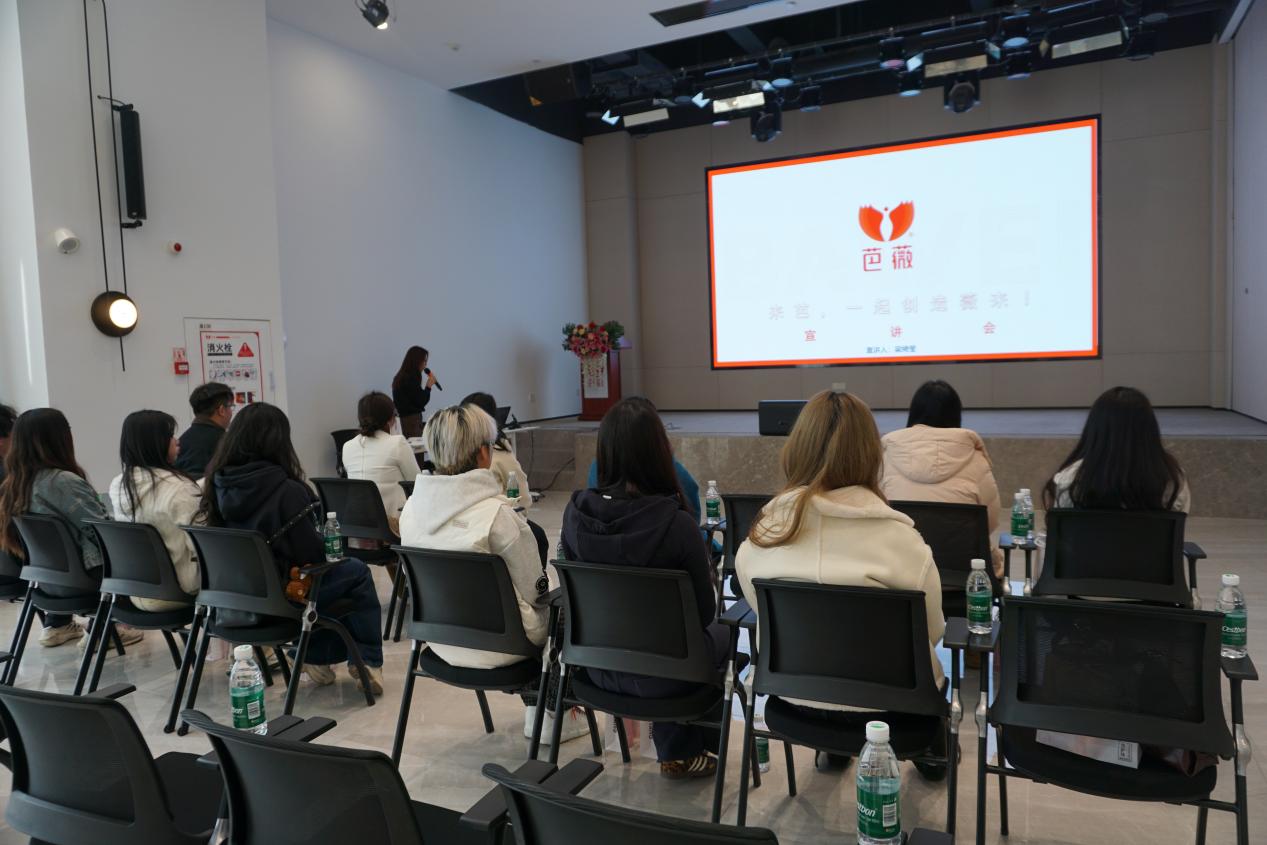 活动伊始,芭薇人力资源部招聘经理马丽冰致欢迎辞,对商学院师生的到来表示热烈欢迎。她表示,希望通过此次交流,可以加深企业与高校之间的互动,共同探索数智营销与直播电商领域的人才培养新模式,推动产学研深度融合。随后,芭薇人力资源部高级招聘专员梁琦莹详细介绍了芭薇公司的发展历程、业务布局、企业文化以及人才发展战略。她强调,随着数字化时代的快速发展,企业亟需具备实践能力和创新思维的高素质营销人才,期待与高校建立长效合作机制,为学生搭建更多实践平台,共同培养贴合行业发展需求的专业人才。