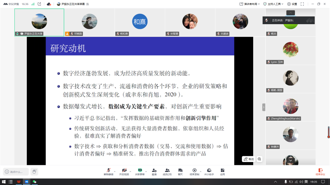 尹振东教授从理论、实践与政策三个层面展开分享。他首先指出,数字经济正在重塑传统创新模式,企业能够通过大数据分析更精准地把握消费者需求,从而优化产品和服务。他以韩都衣舍的个性化定制、沃尔沃集团的智能驾驶技术和小米的用户反馈系统为例,生动展示了数据驱动创新在企业实践中的应用。