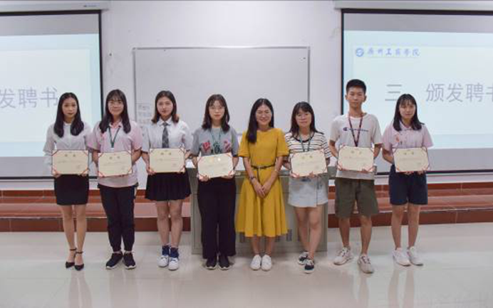 大会的最后议程,第十二届学生副书记江子彬师兄为大家讲解本次活动的流程及注意事项。主席团成员郑钒河师兄提出学生干部要起榜样作用,做好青年学生思想教育引领工作。最后,由黄彩微老师为团学干部颁发聘书。