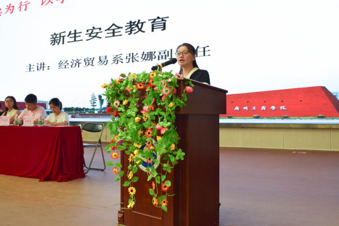 随后,张娜副主任为19级新生作安全教育。张娜副主任要求新生明确目标,学会思考与规划自己的人生。此外,她还提醒新生在大学生活中应注意自身安全,提高自我防范意识,顺利度过丰富的大学生涯。