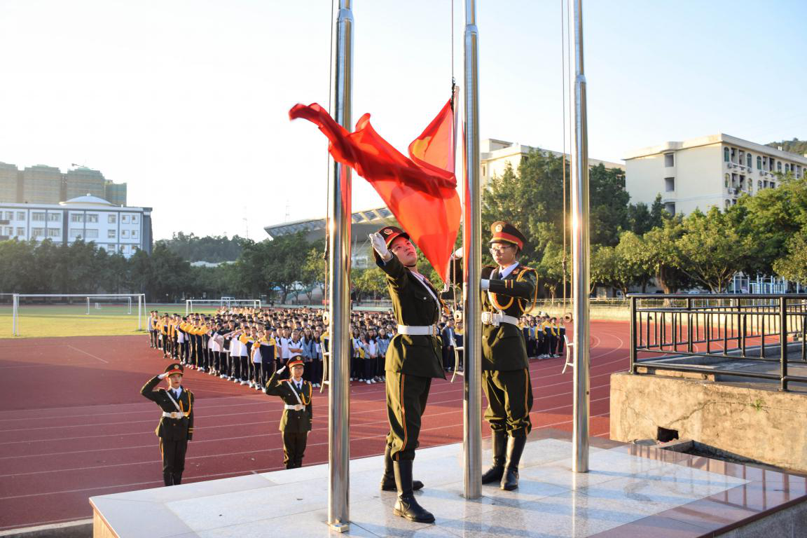 秋风飒爽,落叶纷纷。10月29日,经济贸易系17级升旗仪式于花都校区操场隆重举行。