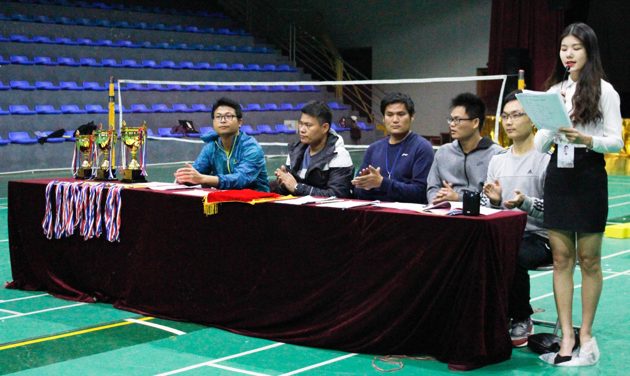 决赛已赛出胜负,颁奖典礼由刘思婷同学主持,出席本次颁奖典礼的嘉宾有beat365在线体育官网登录入口体育部非球类教研室主任林伟光老师、体育部体质测试中心主任赖荣亮老师、体育部钟丽老师、羽毛球比赛总裁判长朱强老师。