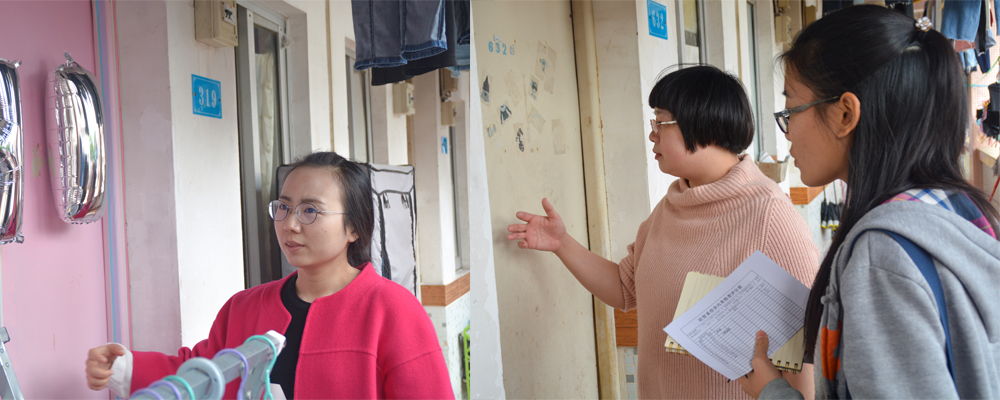 方韵诗、王硕老师正在检查宿舍