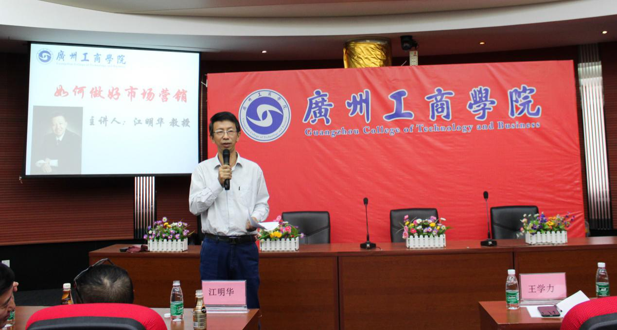 beat365有幸邀请北京大学光华管理学院江明华教授于2017年11月10日下午莅临beat365花都校区教学楼7楼报告厅进行“如何做好市场营销”的讲学。