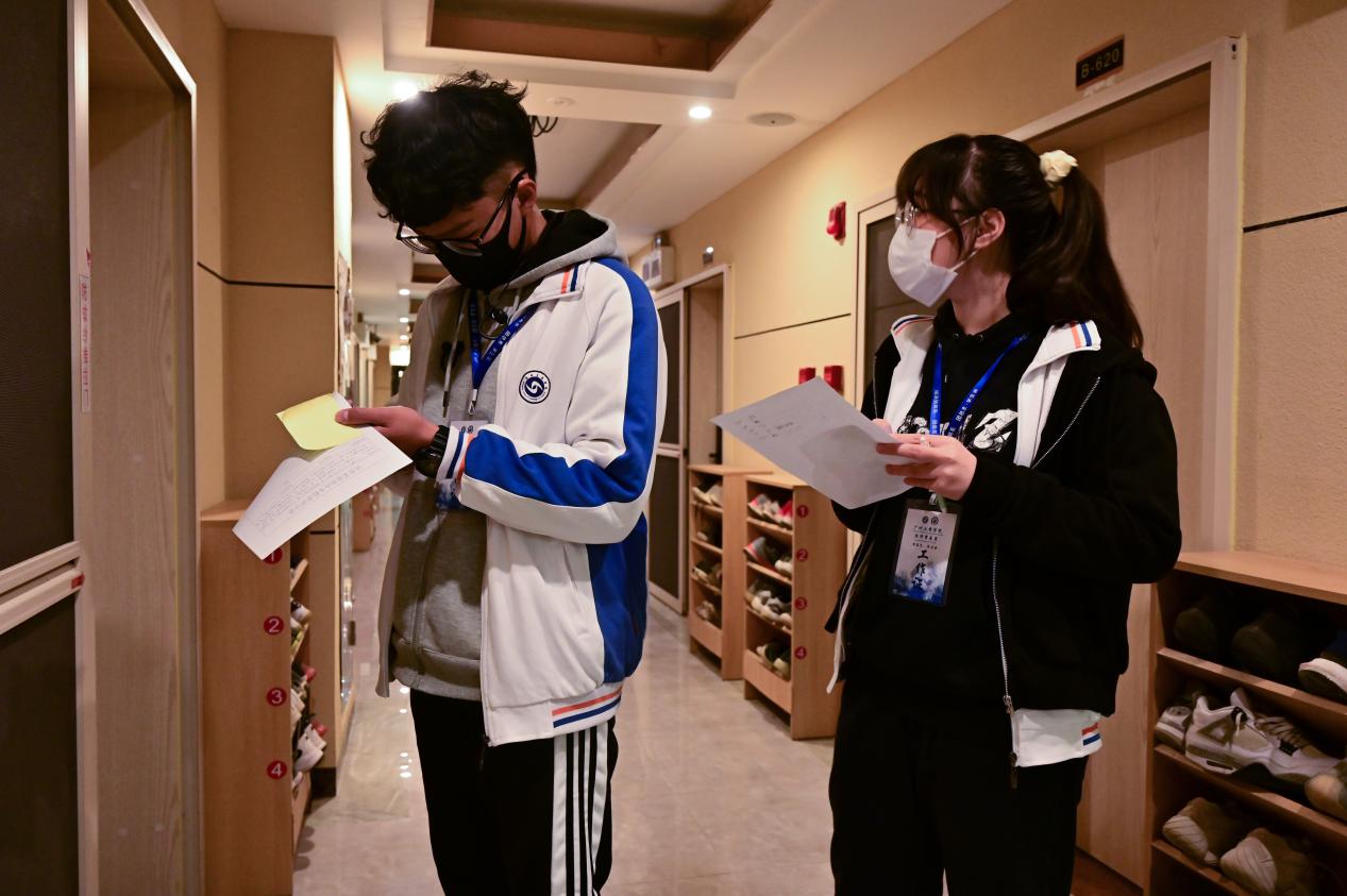 检查开始前,生活部干事向检查人员介绍宿舍检查工作的注意事项,重点强调礼貌问题,检查人员仔细聆听并牢记要点。