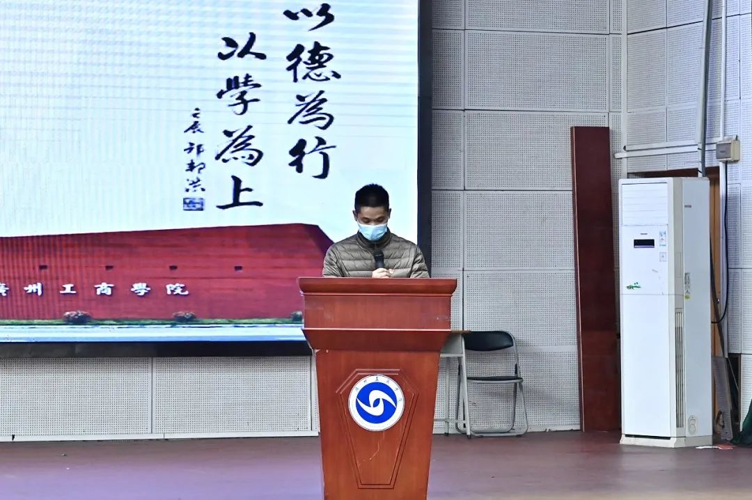 经济贸易系团总支书记谢树明老师宣读本次“三风建设”表彰文件,本次大会中,共表彰经贸系国家奖学金等十一项先进个人和先进集体的奖项。谢树明老师希望各位同学以此为榜样,在以后的学习生活中刻苦认真,勤奋上进。积极践行“以德为行,以学为上”教育思想,争取在学业上取得更好的成绩。