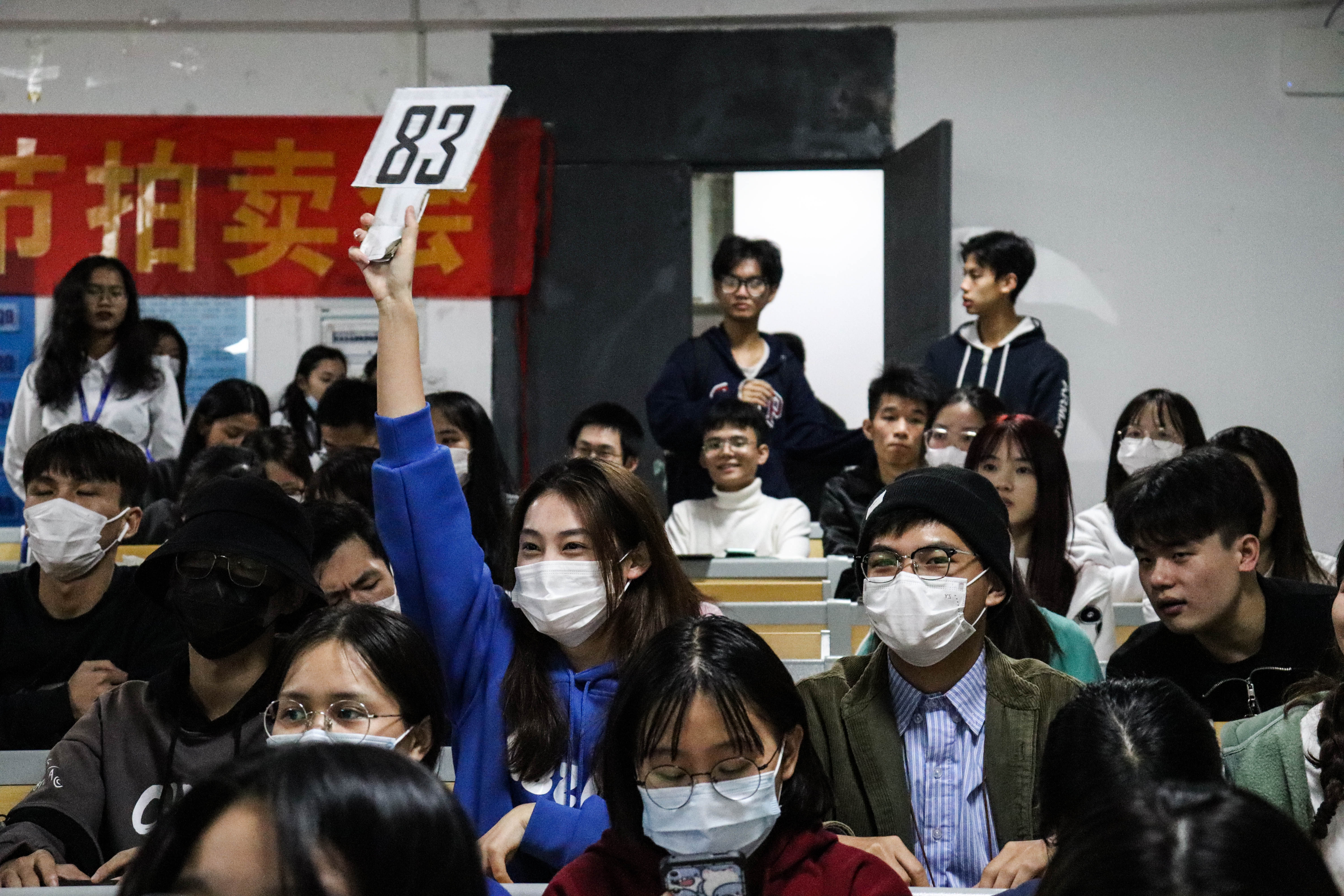 大会伊始,参加本次活动嘉宾和工作成员纷纷入场。紧接着主持人详细地讲述了拍卖的规则,为后面的拍卖大戏打下了铺垫。拍卖现场,同学们非常踊跃参与进来。竞拍者们不停举起自己的拍卖牌,“你方唱罢,我方登场”,拍卖现场非常激烈。