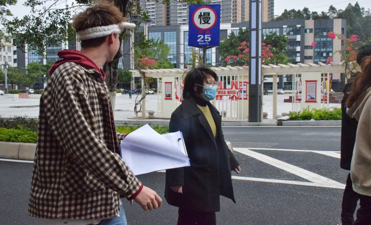 老师和检查人员在去检查的路上