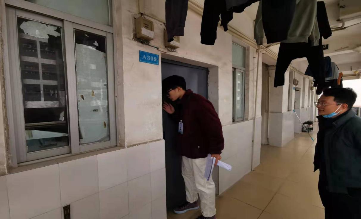 老师和检查人员轻声敲门,进入学生们的宿舍后认真检查宿舍内务,深入了解了学生宿舍情况和对学校宿舍的相关意见。在检查过程中,老师们对优秀宿舍表示赞赏,希望其继续保持;对存在问题的宿舍也提出了改进的建议,同学们都非常积极,认真配合。