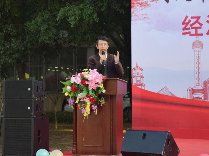 开幕式由经贸系主任王学力教授致辞,他阐述模拟经营节对学生未来发展的促进作用,并表达对本次活动的衷心祝福,希望同学们用所学理论知识与本次实践相结合,在活动中有所收获。接着由17级市场营销专业冯明铿师兄分享个人经验与感受,愿各位摊主得到经营的锻炼,奠下创业的基础。