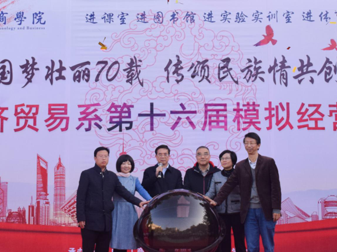 为积极响应国家“大众创业、万众创新”号召,深入贯彻我院“德学五进”教育思想,我系于2019年12月3日在文化广场举办第十六届模拟经营节开幕式。
