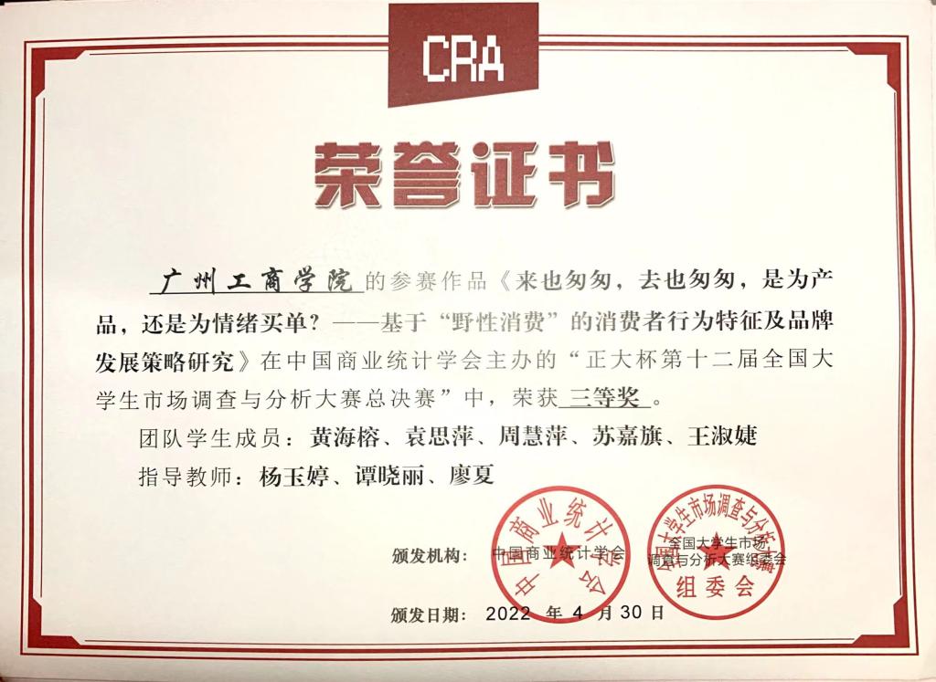 2022年4月,商学院三个项目团队参加“正大杯”第十二届全国大学生市场调查与分析大赛,获国家级三等奖2项、省级三等奖1项,获得参加本项学科竞赛最好成绩。