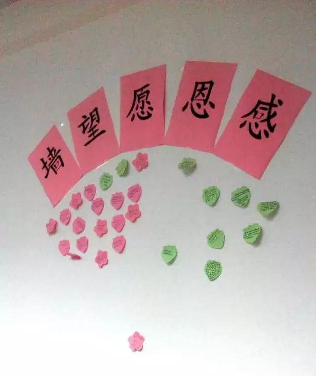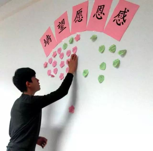 同学们把自己的愿望书写下来,贴到愿望墙上