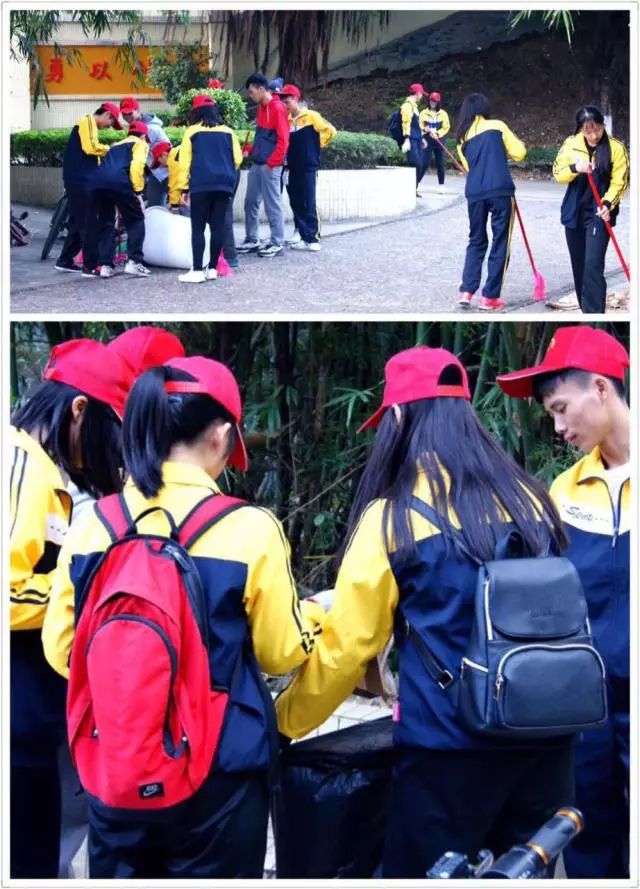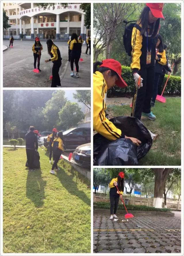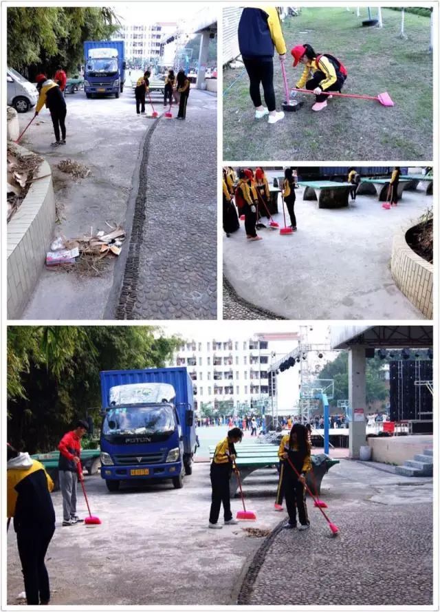 在经过简单地分配任务后同学们纷纷拿起了扫把,带起了手套认真地投入到清理活动。