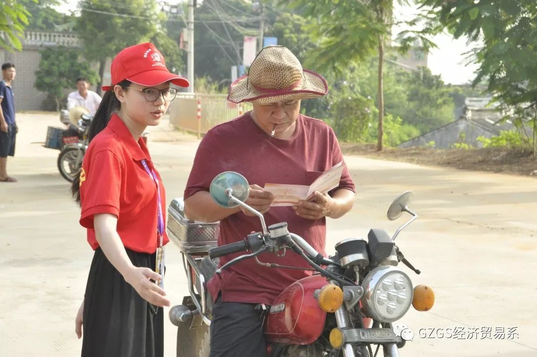 同时也向路边的村民们派发和讲解相关政策资料