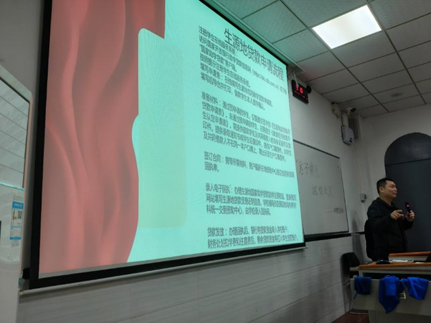 接下来,黄享政老师仔细地依次介绍了生源地贷款的申请流程、续贷操作、提现操作、提前还贷操作、毕业还贷操作。他用通俗易懂的语言和生动详实的案例,为大家解读生源地贷款的政策细节。他强调,生源地贷款还款是非常重要的,这会影响我们的征信,进而影响我们的生活。诚信是我们立足社会的根本,按时足额偿还贷款,不仅是对国家资助政策的尊重,更是为自己的未来积累宝贵的信用财富,在求职、创业、购房等人生大事中,良好的信用记录将为我们一路护航。
