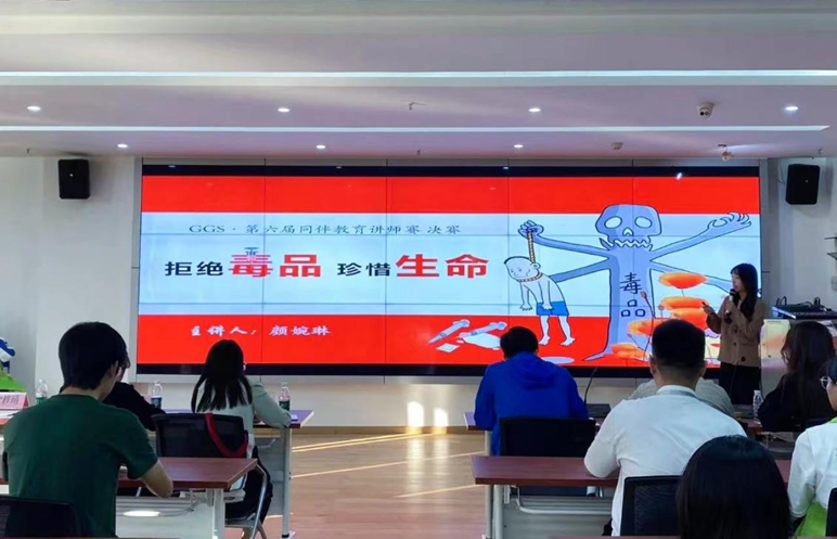 (图1颜婉琳在台上进行演讲 beat365在线体育官网登录入口第六届同伴教育讲师赛决赛)