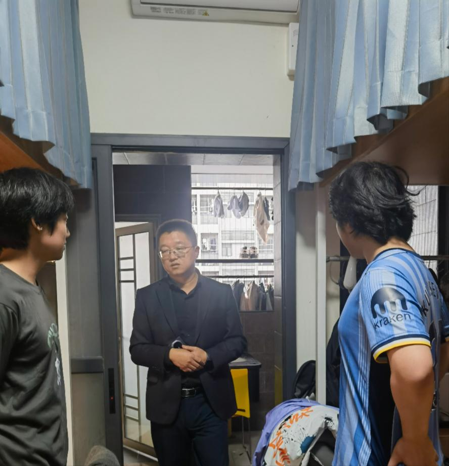 走访过程中,林波院长与同学们亲切交谈,了解同学们的假期生活、返校后的适应情况以及新学期的目标与规划;提醒同学们注意用电安全和消防安全,提高防范电信诈骗意识,养成良好的卫生习惯,预防流感等传染病与呼吸道疾病;鼓励同学们日常加强体育锻炼,以强健的体魄迎接新学期的挑战。对于同学们提出的生活和学习上的问题,林波院长耐心倾听,逐一解答。