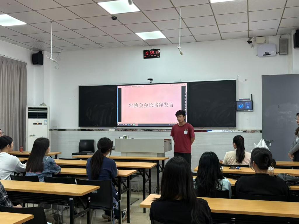 会议伊始,协会指导教师吕境仪发表讲话。她首先对协会新成员表示热烈欢迎,介绍了协会在学科竞赛、校园实践等方面的成绩,并对新成员提出期望:“希望大家以积极的态度,在协会中锤炼市场洞察能力与团队协作精神,将课堂知识转化为实践动能”。