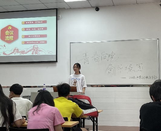 本次的党史班会会议主要由奏唱国歌;宣党,知党,名正理;影片回顾党史;团支书特色留影,录视频等四大部分展开。