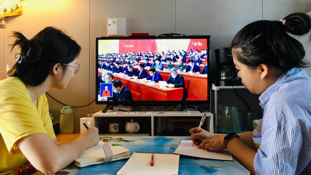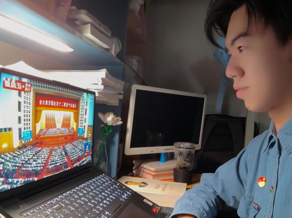 图1:商学院党委书记林波同志收听收看大会