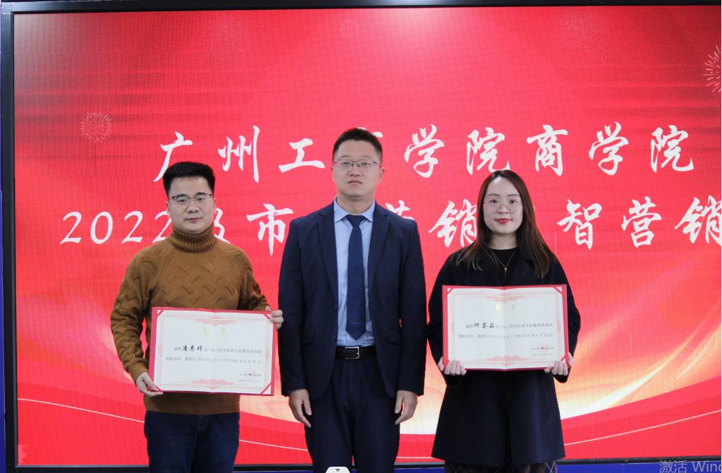 林波院长给企业导师颁发聘书。企业方代表潘寿璋先生为数智营销班的成长导师颁发聘书。