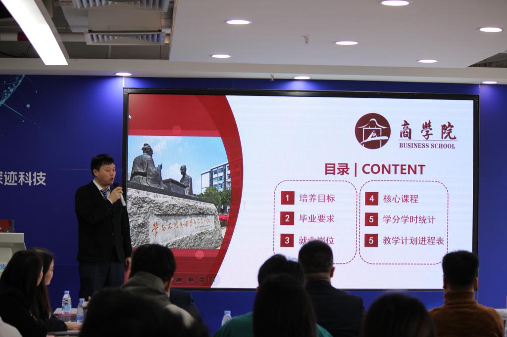 市场营销教研室王建军主任详细介绍人才培养方案,希望数智班同学们在通过三年的理论学习和一年的产业实践中能发展成为聚焦于粤港澳大湾区的社会经济需求的,具有数字思维和卓越领袖能力的复合型营销管理人才。王建军主任还着重介绍了人才培养方案的目标、毕业要求、就业岗位、学时学分等。