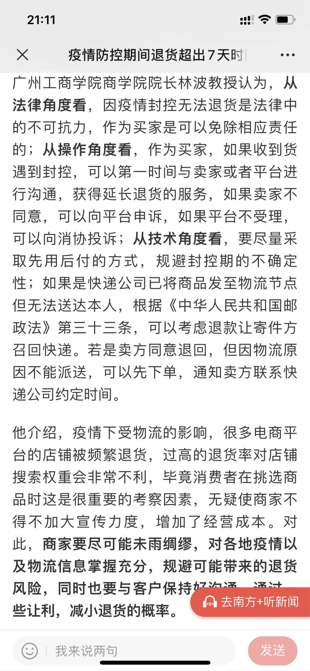 《疫情防控期间退货超出7天时限能退货吗,专家:合理诉求,不应拒绝》https://static.nfapp.southcn.com/content/202212/02/c7134314.html?colID=5774&enterColumnId=2147483647&from=weChatMessage&date=bnVsbA==&layer=3