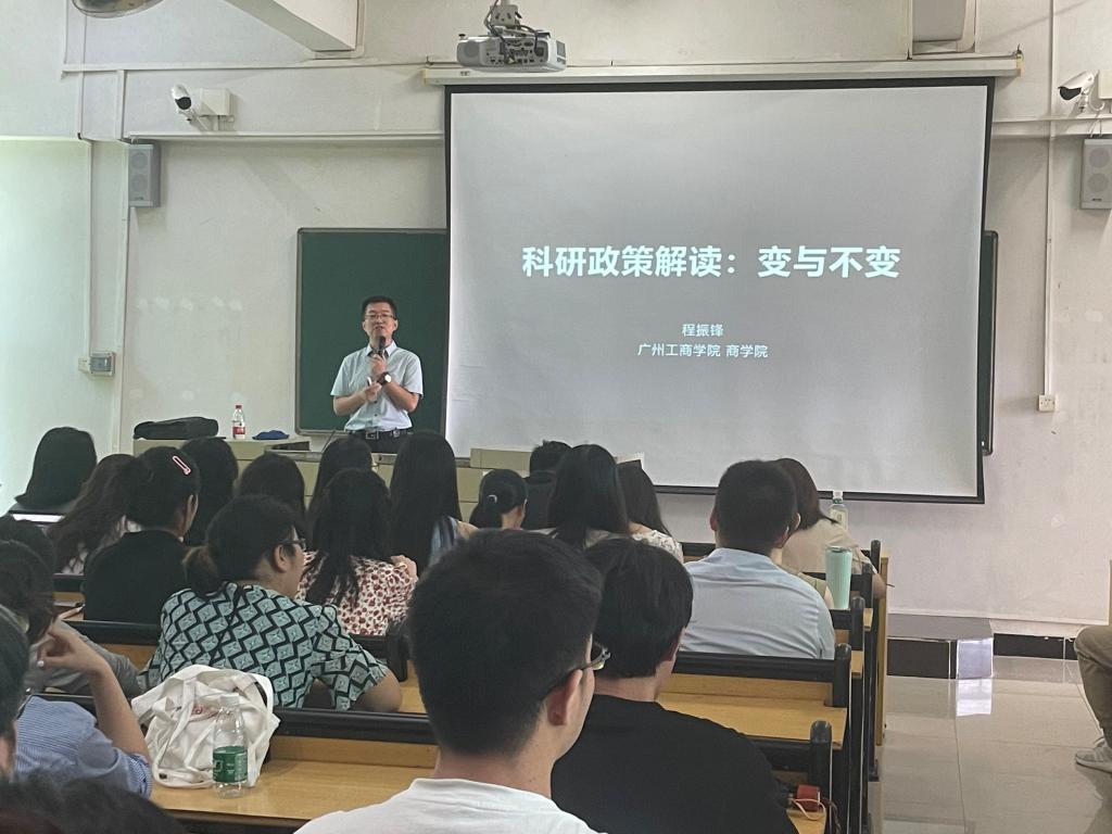 程振锋副院长进行了科研政策解答。从跟优秀名师的一次深刻的对话、结合自己的经历娓娓道来。强调回归现实、回归本真,商学院教师要做好科研、教学、实践“铁三角”工作。教学是教师的立足根本,再次强调新教师们暑假要备课、备讲。提醒新教师基于价值判断、认真思考并确定自己的目标,希望老师们能三项工作都做到、并有一个专长;要有“为客户创造价值”的意识,工作要有工作成果。教师要保持自我的动力来源,要有挑战性、认可性、责任性、成长性。对新教师提出了科研建议:探寻与聚焦,横向上在原有的经验上探索,再在深度上聚焦、明确研究方向;鼓励老师们要发掘专长、抓住机会、调动自我的四大动力、合理分配精力,发表高质量文章、在工作上做得更好。