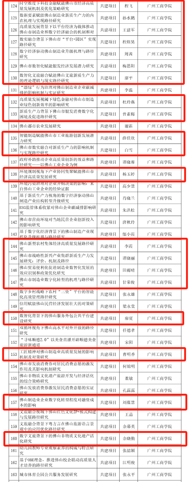 2024年4月28日,佛山市社会科学界联合会公布了2024年度佛山市社科规划项目立项名单,我院共获批立项20项,继2023年再创立项数量新高,比2023年增加了7项;立项数量占全校41项立项总数的48.8%。