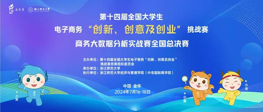 2024年7月16日至18日,备受瞩目的第十四届全国大学生电子商务“创新、创意及创业”挑战赛(简称“三创赛”)商务大数据分析实战赛全国总决赛在浙江省金华市浙江师范大学圆满举行。此次大赛由第十四届全国大学生电子商务“三创赛”竞赛组织委员会主办,浙江师范大学承办,浙江师范大学经济与管理学院(中非国际商学院)执行,吸引了来自全国各高校的优秀团队参与,展现了当代大学生在电子商务领域的创新精神和实战能力。