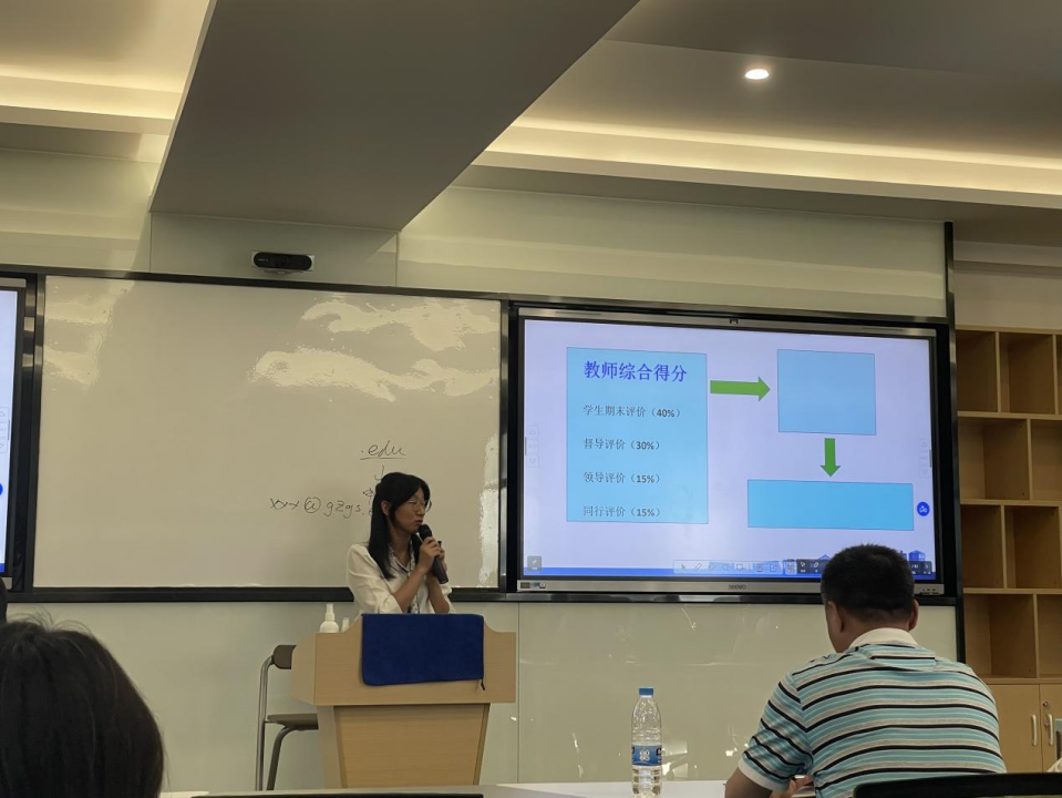 随后,商学院办公室主任李琳就《人事管理制度及财务报销制度培训》进行深入讲解,重点介绍了学院的行政管理体系、日常办公流程以及各类规章制度。李主任的讲解条理清晰,内容丰富,为新教师们提供了宝贵的行政管理经验和服务指南。