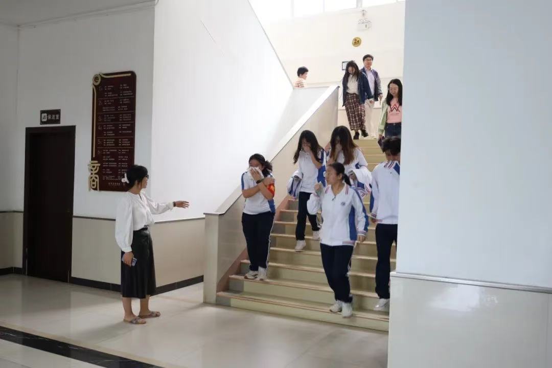 随着一阵急促的警报声响彻商学院大楼,消防演练正式拉开帷幕。烟雾弥漫中,老师们按照预定方案迅速分组,小组各司其职,在采取积极措施灭火的同时指引师生们撤离至集合地点并迅速清点人数,确保无人员遗漏。