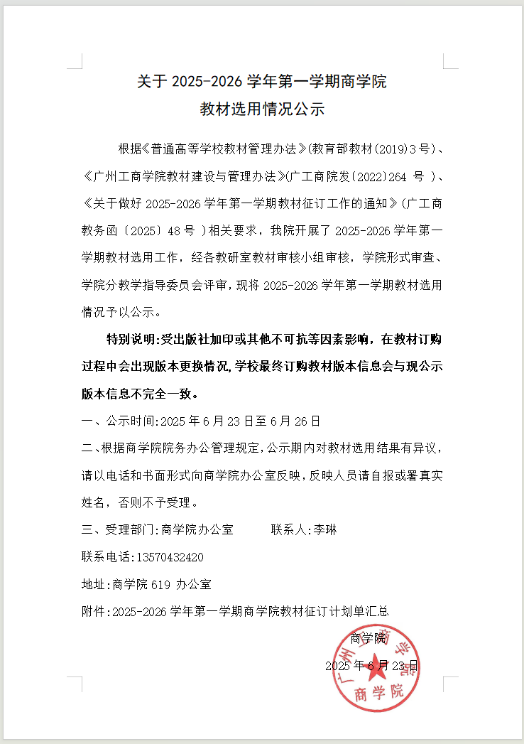 关于2025-2026学年第一学期商学院 教材选用情况公示