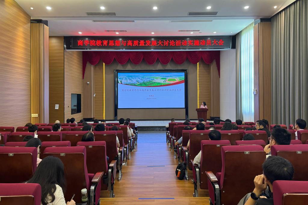 为深入贯彻落实学校《关于印发<beat365在线体育官网登录入口关于教育思想与高质量发展大讨论活动实施方案>的通知》精神,确保学校大讨论的主题、目标、原则、议题和要求在商学院有效落地。2025年7月2日,商学院在图书馆414报告厅召开了教育思想与高质量发展大讨论活动实施动员大会,会议以“智能时代、教育何为”“教育强国、工商何为”两大讨论主题为引领,拉开为期四个月的教育思想大讨论活动序幕,系统谋划新时代商科教育创新发展路径。
