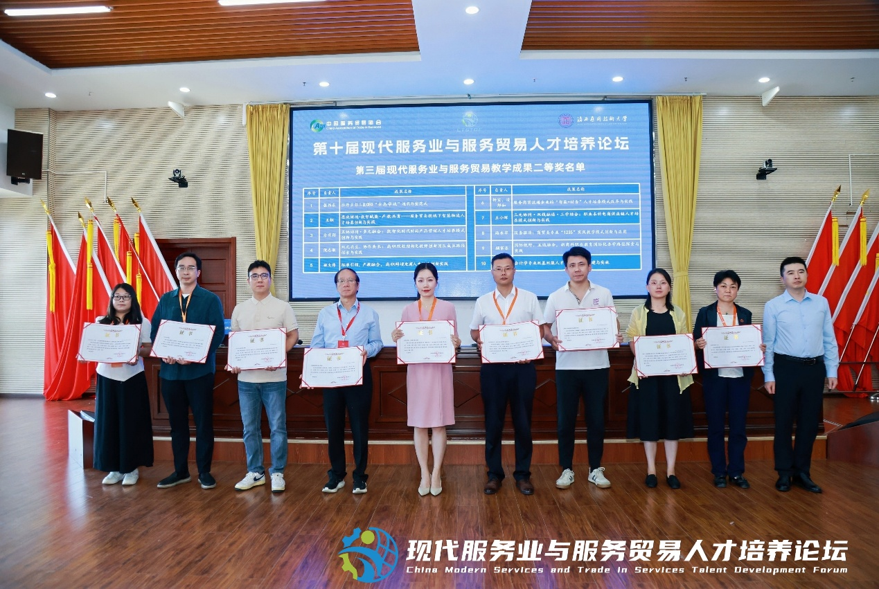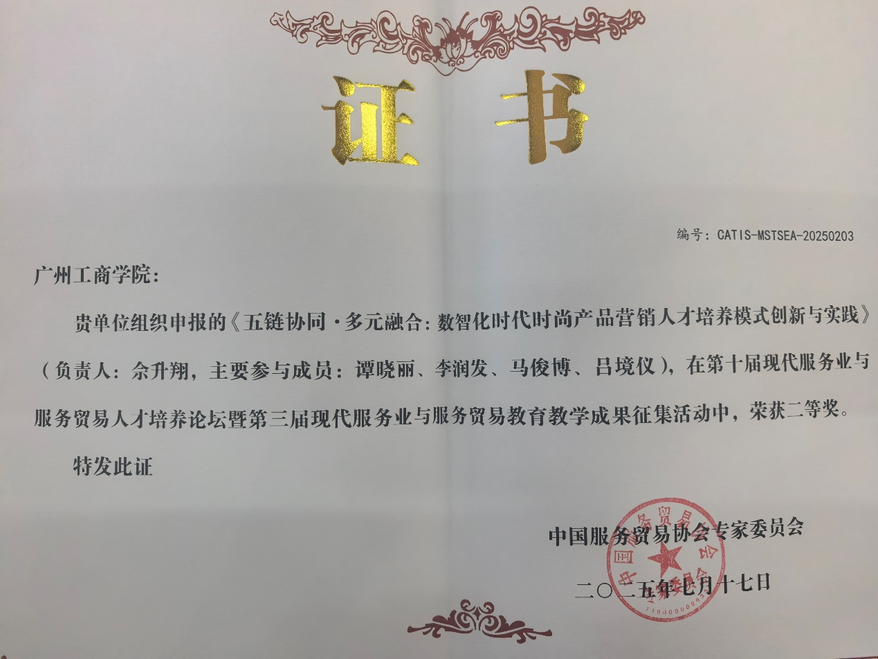 在论坛上,由佘升翔教授负责申报的《五链协同·多元融合:数智化时代时尚产品营销人才培养模式创新与实践》项目,在第三届现代服务业与服务贸易教育教学成果征集活动中荣获二等奖。这一荣誉不仅是对beat365教师教学研究成果的肯定,更是商学院在人才培养模式创新与实践方面取得显著成效的有力证明。