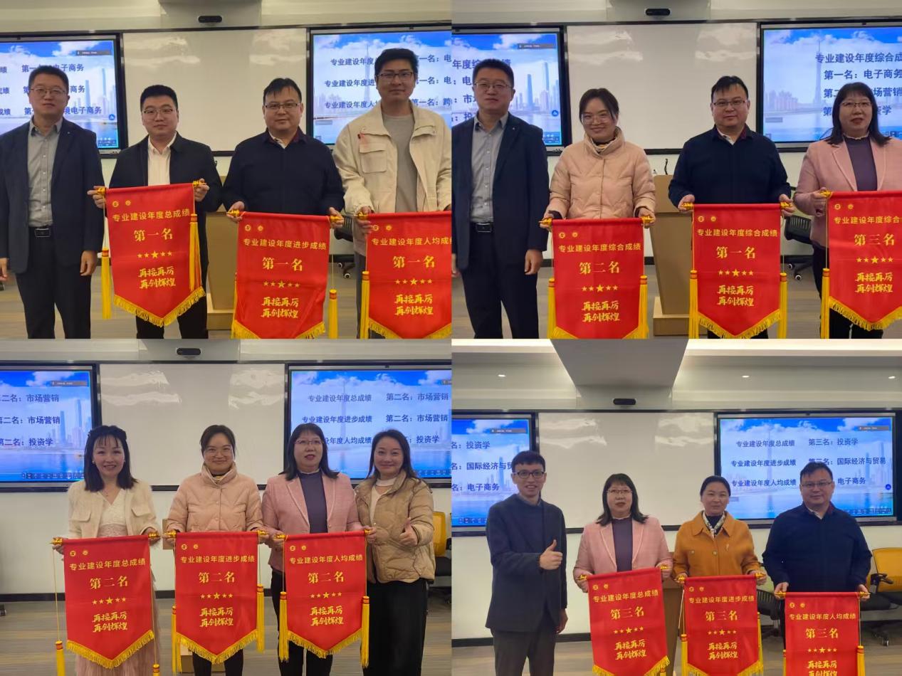 会议伊始,各教研室围绕教学改革、师资建设、产教融合三大维度,既晒出“硬核”成绩单,也坦诚剖析现存问题,更锚定2026年发展坐标。随后分管领导立足分管领域,以“三聚焦”展现管理效能:张娜副书记从党建引领、学生管理两个维度指出学院党委获评省级党建标杆院系培育建设单位,创新构建“党建+N”融合机制,实现学生工作安全稳定“零事故”,招生就业稳中有升;张晓英副院长系统总结教学成果,商学院牵头申报的商科育人成果斩获广东省教学成果奖一等奖,学生竞赛斩获244项国省级赛事奖项,并部署2026年教学改革重点任务;关建波副院长通报实验教学、实习及毕业论文工作成效,提出2026年各项强化举措,完善实践育人质量保障体系。