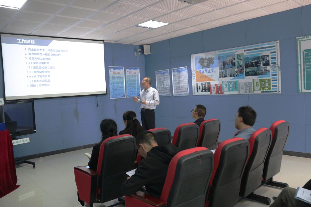 检查组组长张辉副校长在检查中强调:近日南京航空航天大学将军路校区一实验室发生爆燃事故,教训十分深刻,各单位要吸取经验教训,高度重视实验室安全,健全责任体制,压实责任,落实分工,在自查自纠过程中发现的安全隐患,要认真落实整改,切实做好实验室安全档案材料建设,将实验室安全责任体系落到实处,做到有章可循,有据可查。同时,各单位要注意实验室用电安全和消防安全,每天对实验室开关进行漏电检测;要增强实验室信息安全保护意识,防止被病毒攻击;危化品的使用和保存须考虑配套设施配比和放置,严格按照危化品管理制度,规范申购,加强管控。对好的经验和做法,要相互借鉴学习,确保实验室安全管理工作统一规范。