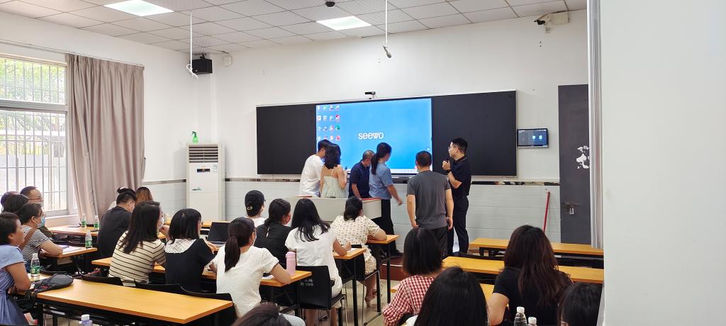 本次培训采用线下主-分会场及智慧教室直播的形式开展,来自希沃的培训讲师介绍了智慧教室的功能和智慧课堂环境,对智慧教室在教学中的实际应用以及电子白板、课堂互动、大屏触控、一键智能录播等常用功能的使用方法进行了详细讲解,并演示了常态化教学课程录播功能。期间,讲师与老师们进行了交流互动,参加培训的老师们积极提问和参与,对智慧教室及其教学模式表现出了极高的热情。