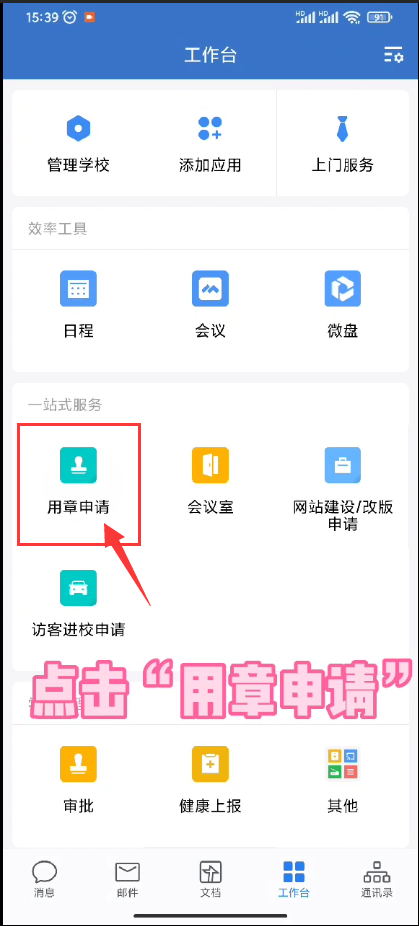 企业微信-学校公章使用申请审批操作指南