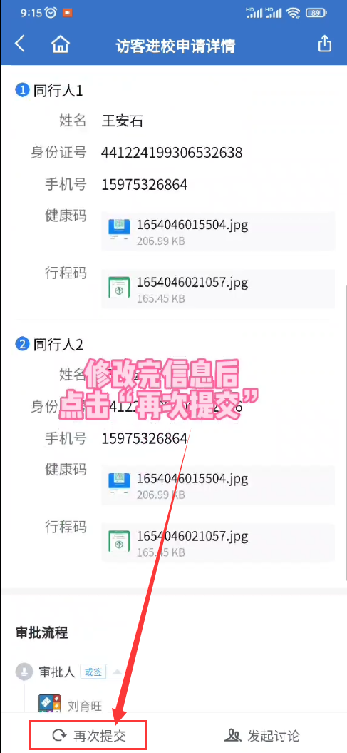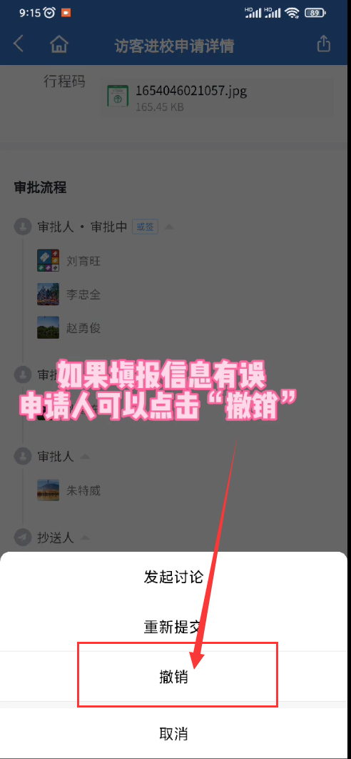 如果访客信息有误,可以撤销,然后修改之后重新提交申请,重新走审批流程。