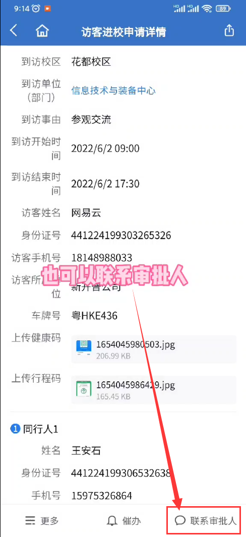 2、联系审批人